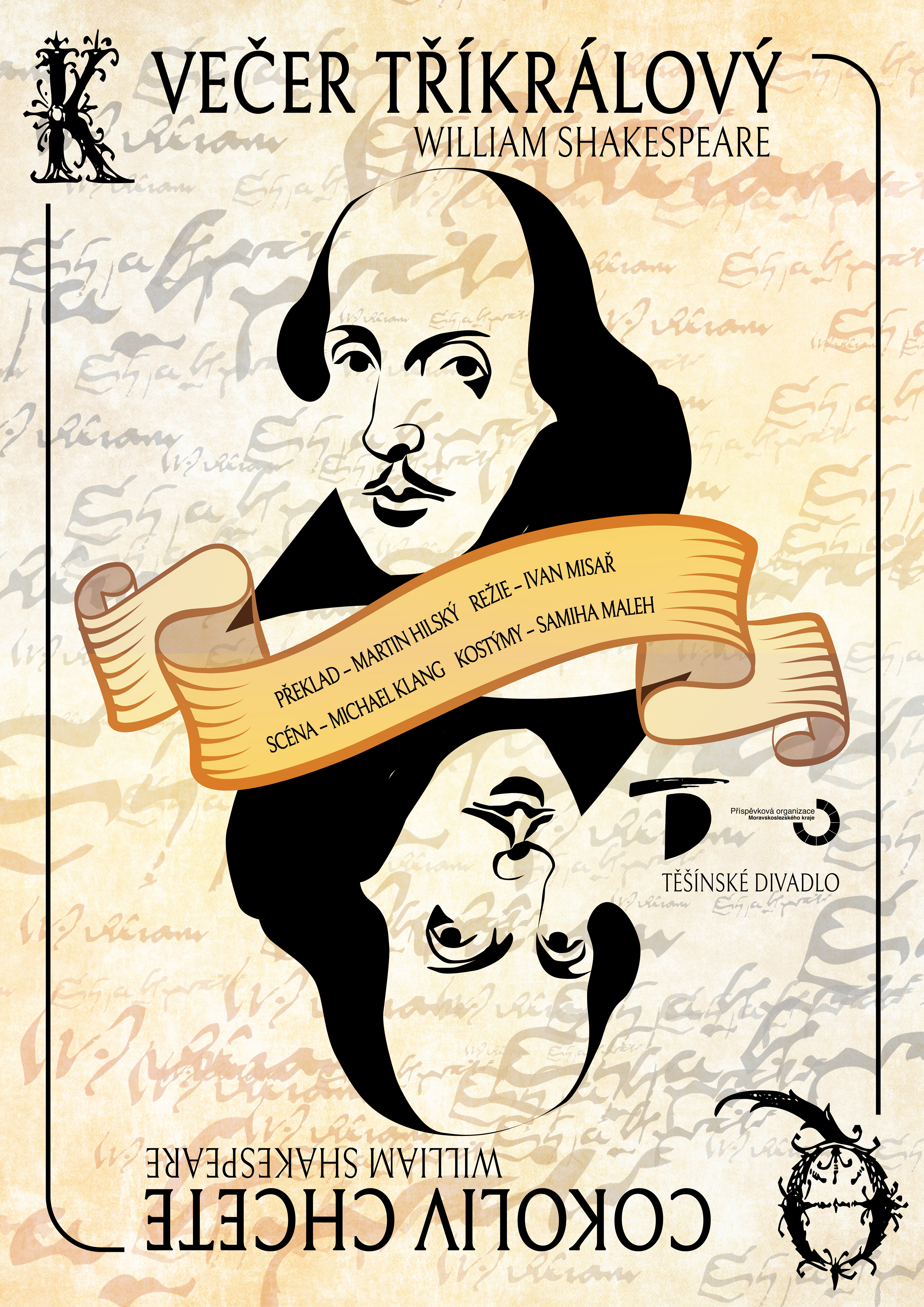 Plakát k divadelnímu představení Shakespeare Večer tříkrálový anebo cokoliv chcete