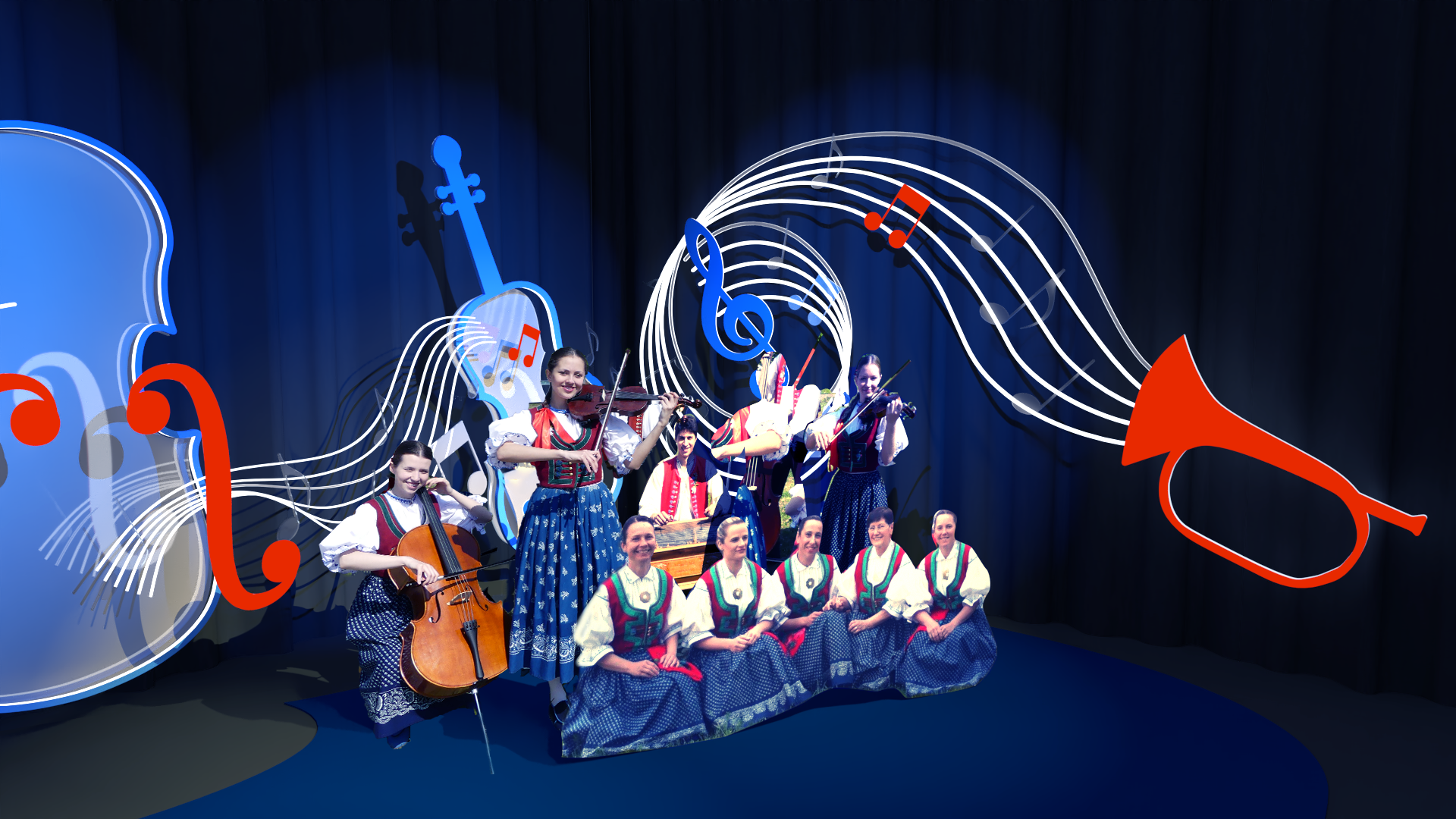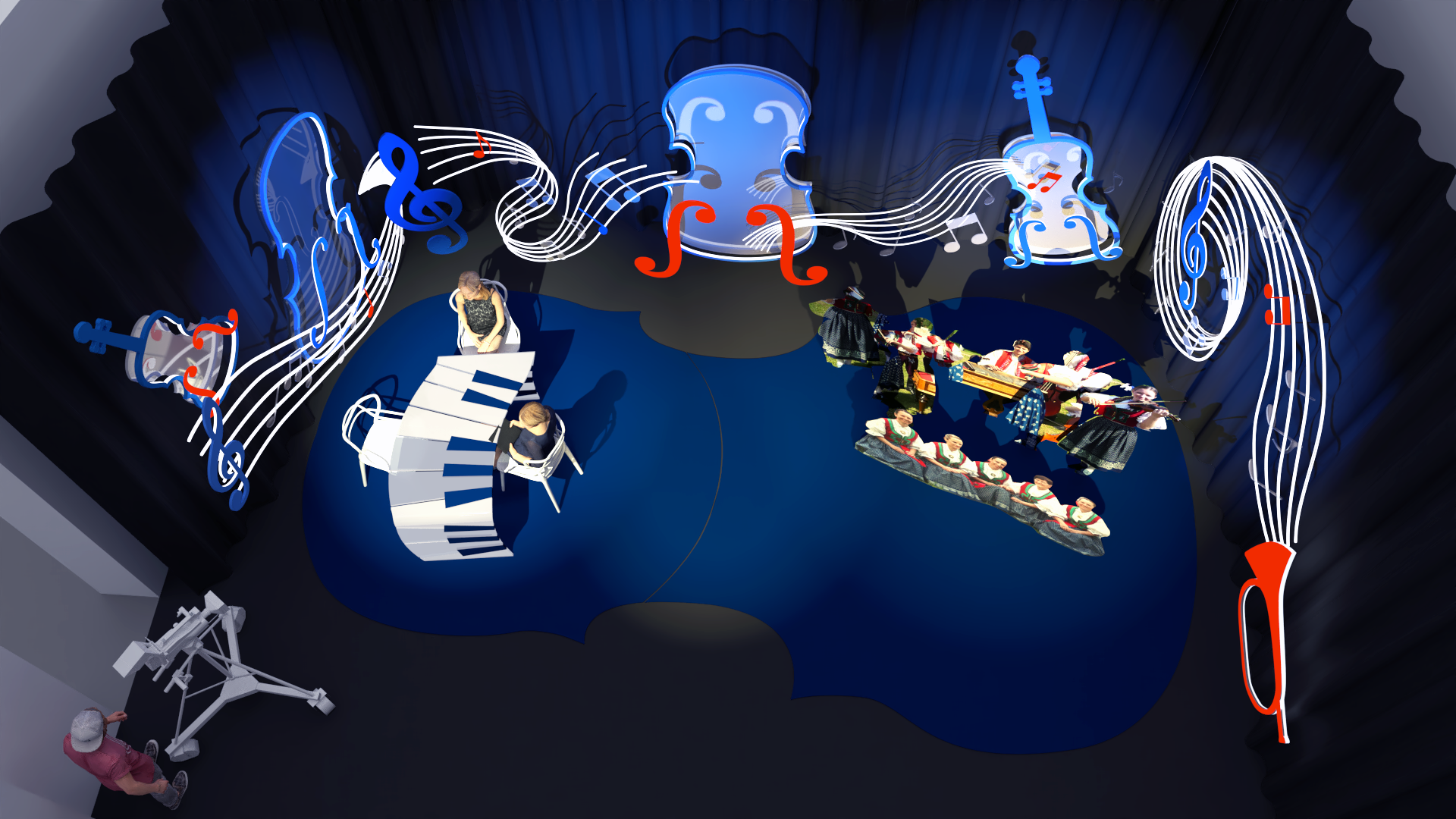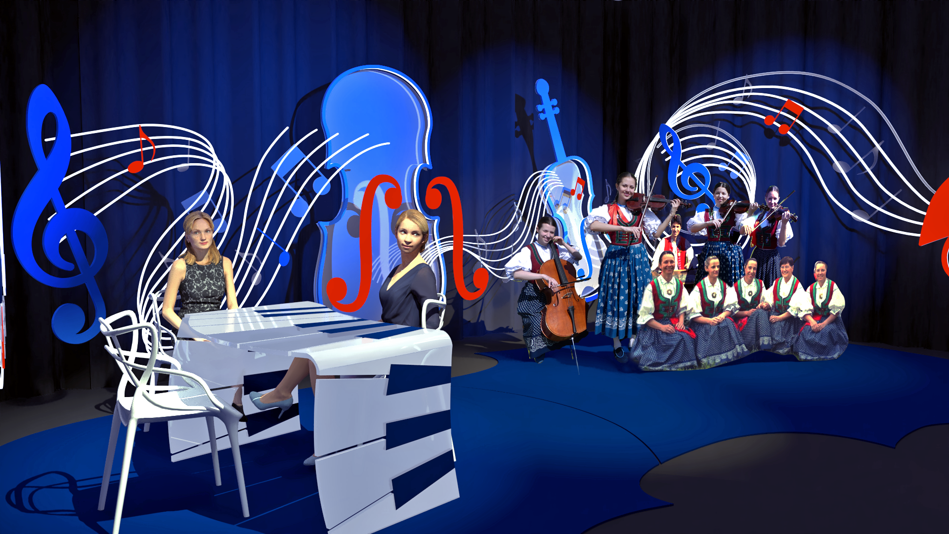 Cílem projektu bylo vytvoření variabilní scény pro hudební folklórní pořad televize NOE.